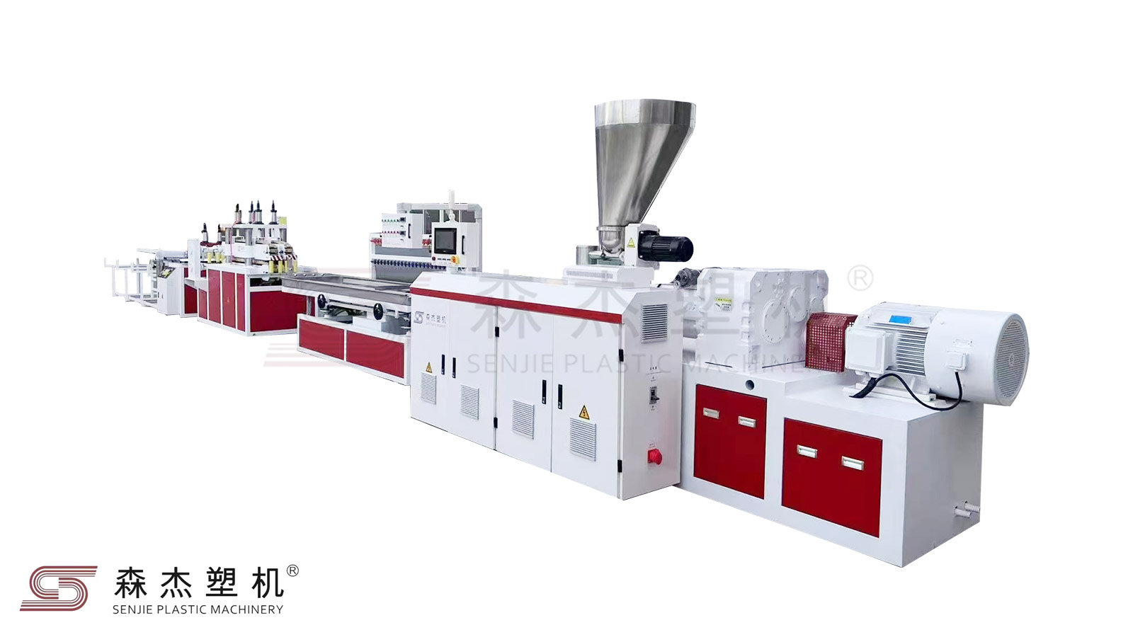 真空定型臺(tái)采用特殊加大漩渦氣泵以及水冷卻系統(tǒng),便于冷卻定型,特別的水平傾斜控制獨(dú)特的三維調(diào)整控制,使得操作簡(jiǎn)便得以更好體現(xiàn)。根據(jù)不同模具,定徑臺(tái)可選用以滿足高速擠出的要求。牽引機(jī)采用獨(dú)特升降技術(shù),上履帶背壓控制,工作平穩(wěn),可靠性好、牽引力大,可自動(dòng)定長(zhǎng)切割,并配置粉塵回收裝置。可生產(chǎn)PVC門窗異型材, 木塑門套,PVC線槽,踢腳線,百葉片等